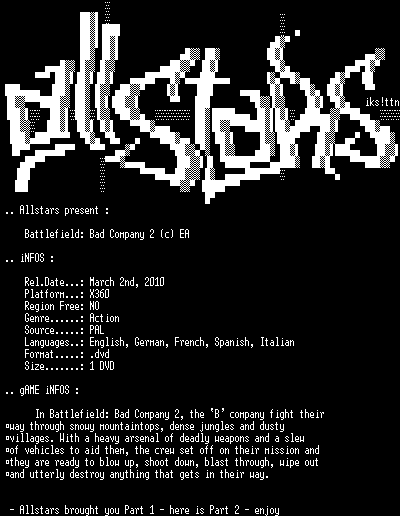 | FiLENAME: | Battlefield.Bad.Company.2.PAL.X360-Allstars.iso |