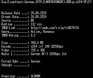 | FiLENAME: | Die.Eisenfaust.German.1979.KiNOFASSUNG.AC3.BDRip.x264-SPiCY.mkv |