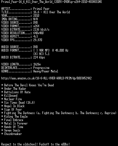 | FiLENAME: | Primal_Fear-16_6_All_Over_The_World_(2009)-DVDRip-x264-2010-ASSASS1NS.mkv |