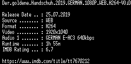 | FiLENAME: | Der.goldene.Handschuh.2019.GERMAN.1080P.WEB.H264-VOiD.mkv |