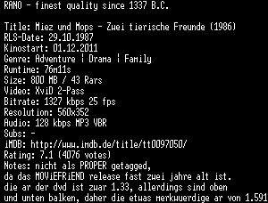 | FiLENAME: | Miez.und.Mops.-.Zwei.tierische.Freunde.German.1986.DVDRiP.XviD-RANOCLASSiCS.avi |