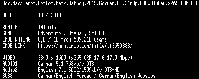 | FiLENAME: | Der.Marsianer.Rettet.Mark.Watney.2015.German.DL.2160p.UHD.BluRay.x265-HDMEDiA.mkv |