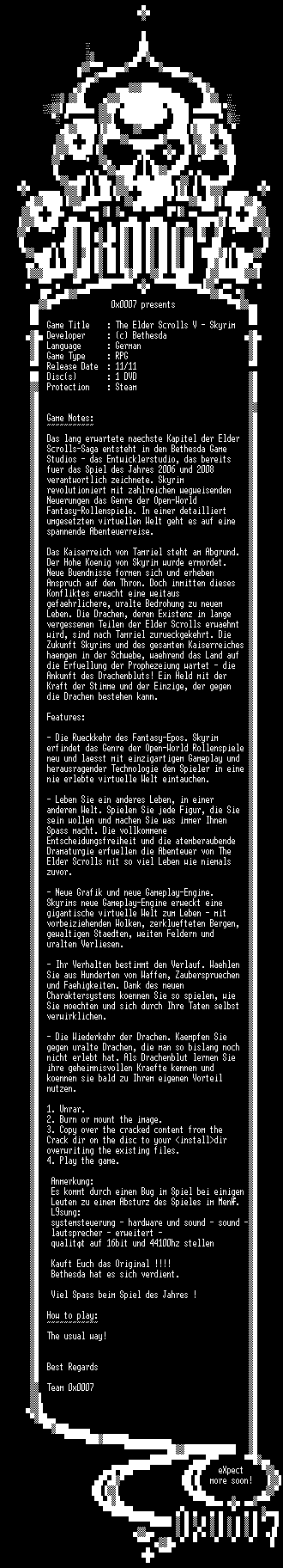 | FiLENAME: | The.Elder.Scrolls.V.Skyrim.GERMAN-0x0007.iso |
