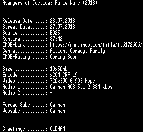 | FiLENAME: | Avengers.of.Justice.Farce.Wars.German.2018.AC3.BDRiP.x264-SPiCY.mkv |