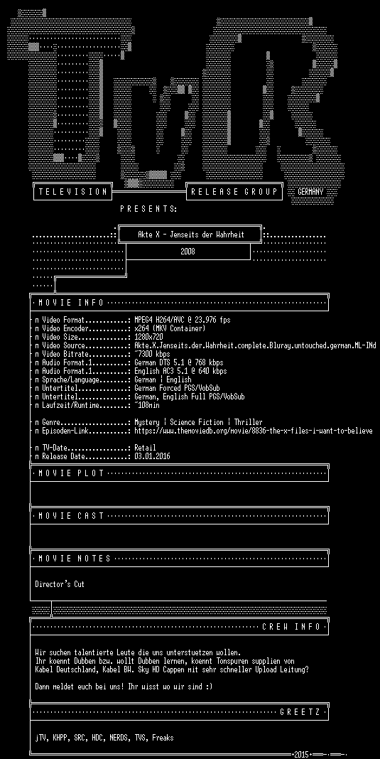 | FiLENAME: | Akte.X.-.Jenseits.der.Wahrheit.DC.2008.GERMAN.5.1.DL.DTS.720p.BDRiP.x264-TvR.mkv |