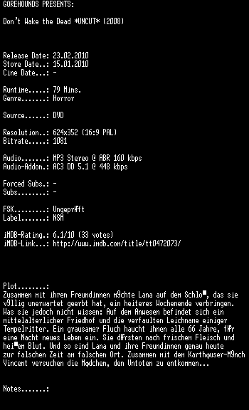 | FiLENAME: | Dont.Wake.The.Dead.UNCUT.German.2008.DVDRiP.XViD-GOREHOUNDS.avi |