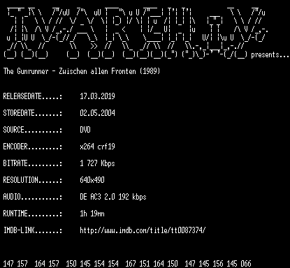 | FiLENAME: | The.Gunrunner.Zwischen.allen.Fronten.1989.German.DVDRip.x264.iNTERNAL-TVARCHiV.mkv |
