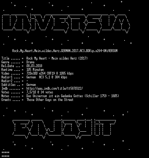 | FiLENAME: | Rock.My.Heart.Mein.wildes.Herz.GERMAN.2017.AC3.BDRip.x264-UNiVERSUM.mkv |