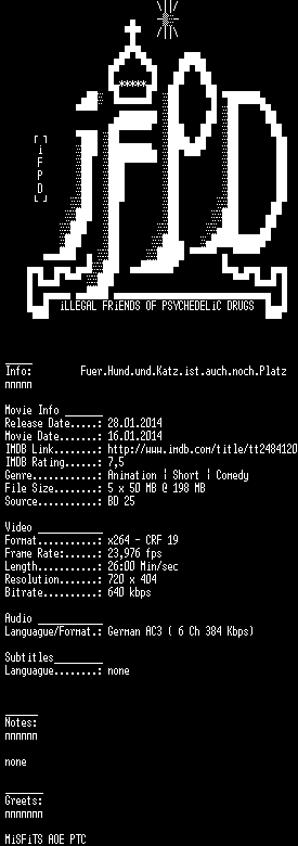| FiLENAME: | Fuer.Hund.und.Katz.ist.auch.noch.Platz.German.BDRip.x264-iFPD.mkv |