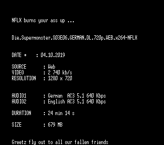 | FiLENAME: | Die.Supermonster.S03E06.GERMAN.DL.720p.WEB.x264-NFLX.mkv |