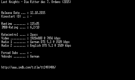 | FiLENAME: | Last.Knights.Die.Ritter.des.7.Ordens.2015.German.DTS.DL.1080p.BluRay.x264-EXQUiSiTE.mkv |