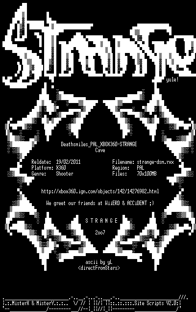 | FiLENAME: | Deathsmiles.PAL.XBOX360-STRANGE.iso |