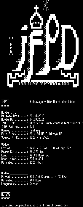 | FiLENAME: | Hideaways.Die.Macht.der.Liebe.German.2011.AC3.BDRiP.XViD-iFPD.avi |