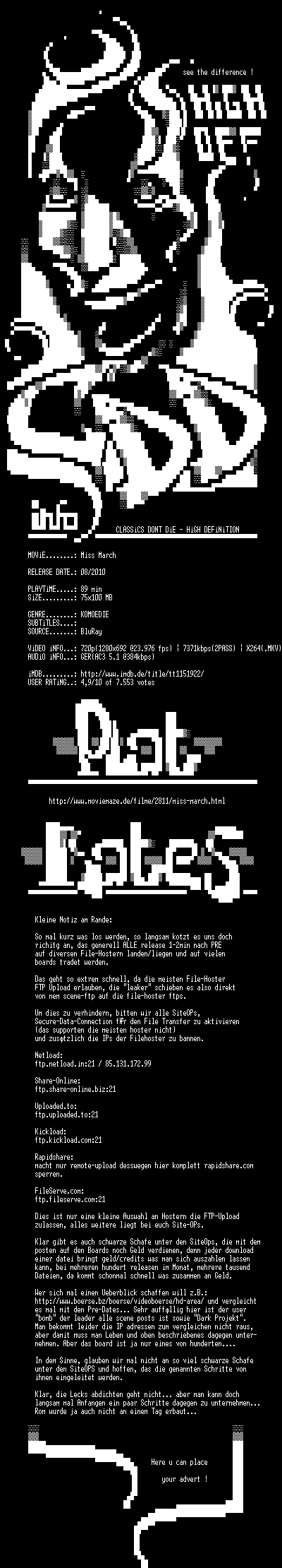 | FiLENAME: | Miss March (Unrated) (2009) [GER 720p BD].mkv |