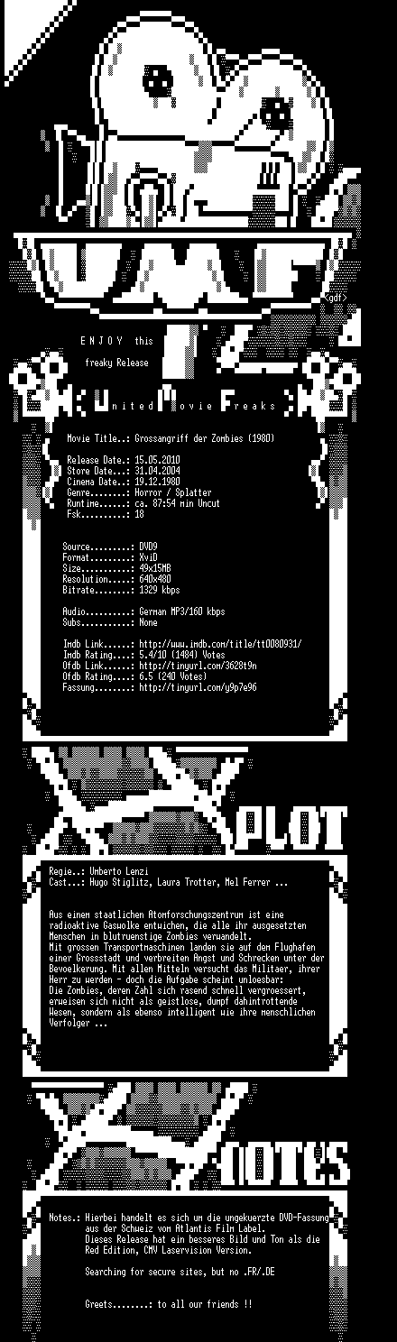 | FiLENAME: | Grossangriff.der.Zombies.UNCUT.GERMAN.1980.DVDRip.XviD.READNFO-UMF.avi |