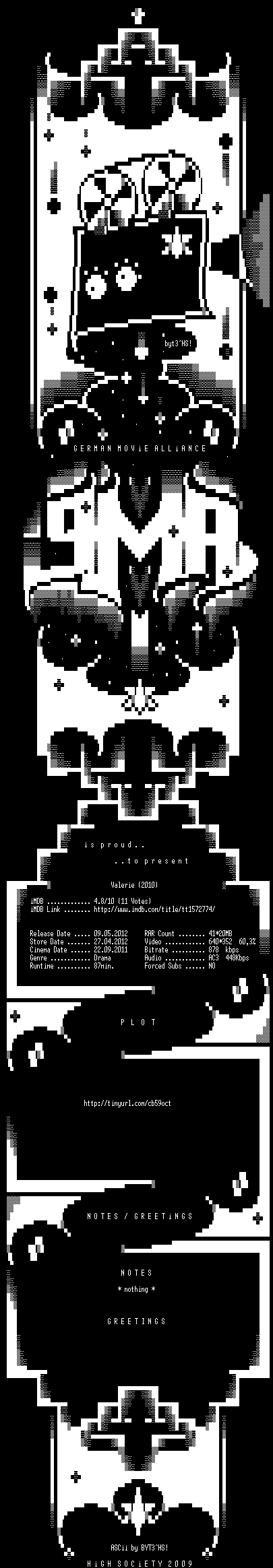 | FiLENAME: | Valerie.German.2010.AC3.DVDRiP.XviD-GMA.avi |