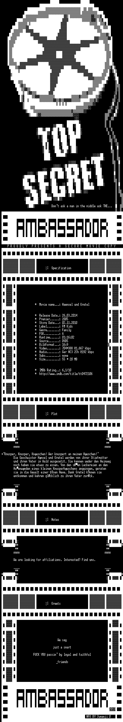 | FiLENAME: | Haensel.und.Gretel.German.2005.DVDRiP.x264-AMBASSADOR.mkv |