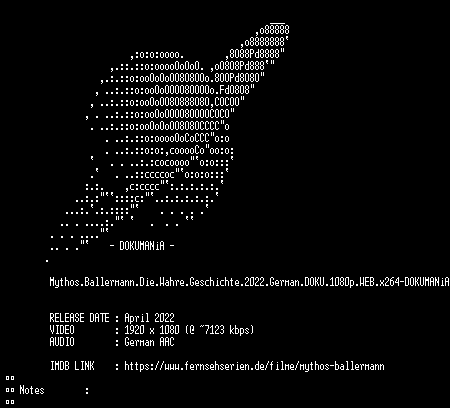| FiLENAME: | Mythos.Ballermann.Die.Wahre.Geschichte.2022.German.DOKU.1080p.WEB.x264-DOKUMANiA.mkv |