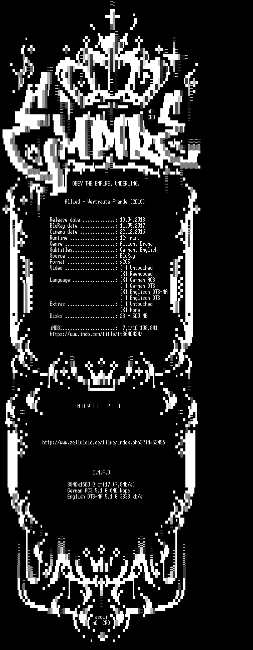 | FiLENAME: | Allied.Vertraute.Fremde.2016.German.DL.2160p.UHD.BluRay.x265-EmpireHD.mkv |
