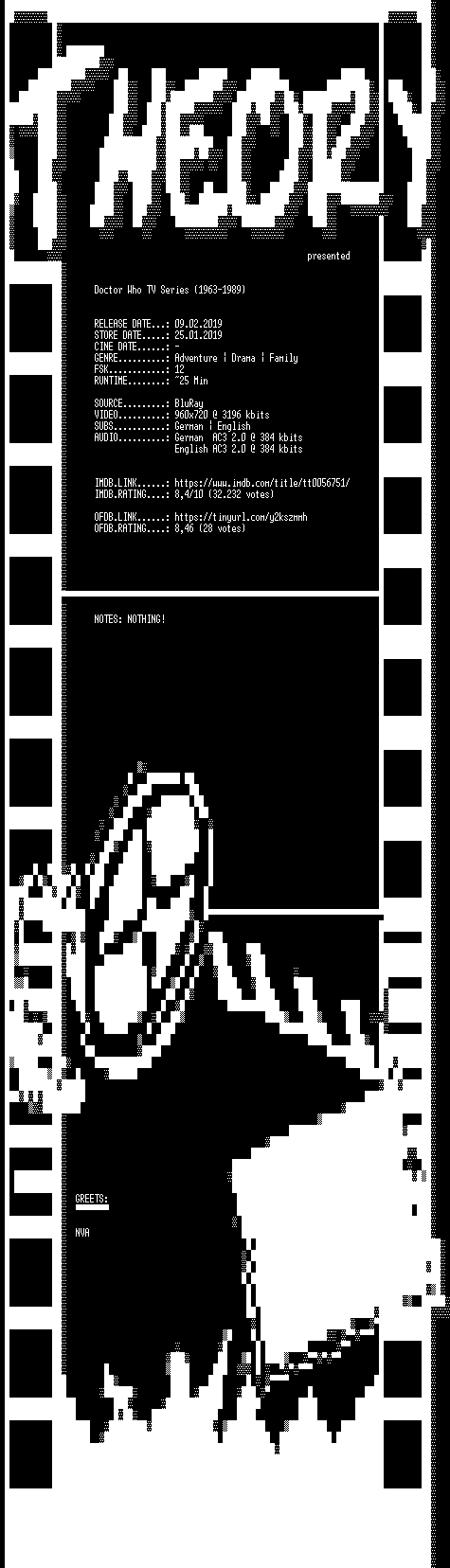 | FiLENAME: | Doctor.Who.S19E04.Castrovalva.Teil.4.German.DL.FS.720p.BluRay.x264-THEORY.mkv |