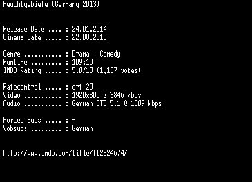 | FiLENAME: | Feuchtgebiete.German.1080p.BluRay.x264-EXQUiSiTE.mkv |