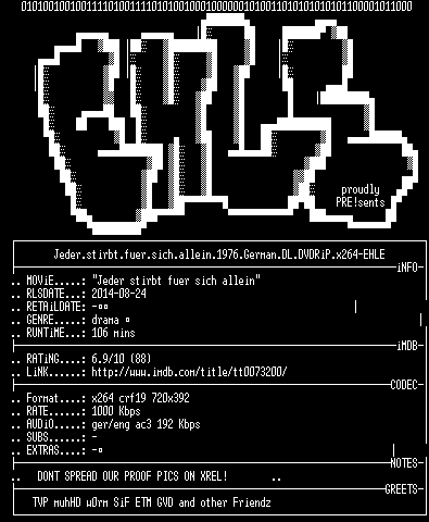 | FiLENAME: | Jeder.stirbt.fuer.sich.allein.1976.German.DL.DVDRiP.x264-EHLE.mkv |