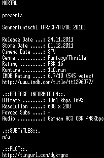 | FiLENAME: | Sennentuntschi.2010.German.AC3.DVDRip.XviD-MORTAL.avi |