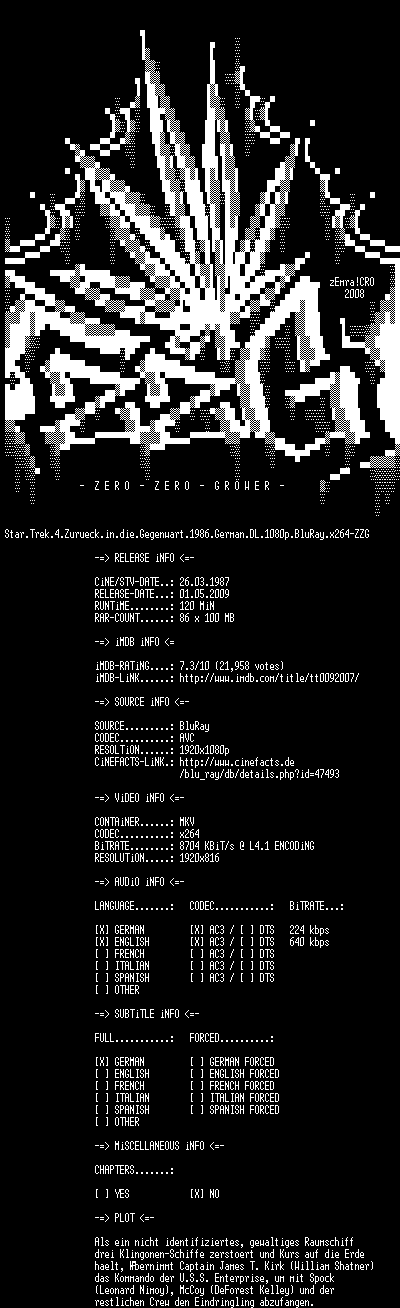 | FiLENAME: | Star.Trek.4.Zurueck.in.die.Gegenwart.1986.German.DL.1080p.BluRay.x264-ZZG.mkv |