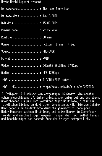 | FiLENAME: | The Lost Battalion (2001) [GER WS DVD].avi |