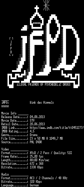 | FiLENAME: | Wink.des.Himmels.2005.German.AC3.DVDRiP.XViD-iFPD.avi |