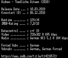 | FiLENAME: | Widows.Toedliche.Witwen.German.2018.AC3.BDRip.x264-COiNCiDENCE.mkv |