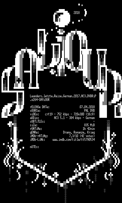 | FiLENAME: | Leanders.letzte.Reise.German.2017.AC3.DVDRiP.x264-SAViOUR.mkv |