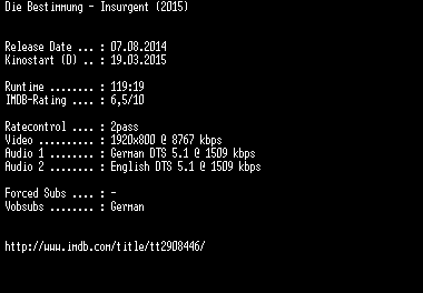| FiLENAME: | Die.Bestimmung.Insurgent.2015.German.DTS.DL.1080p.BluRay.x264-EXQUiSiTE.mkv |