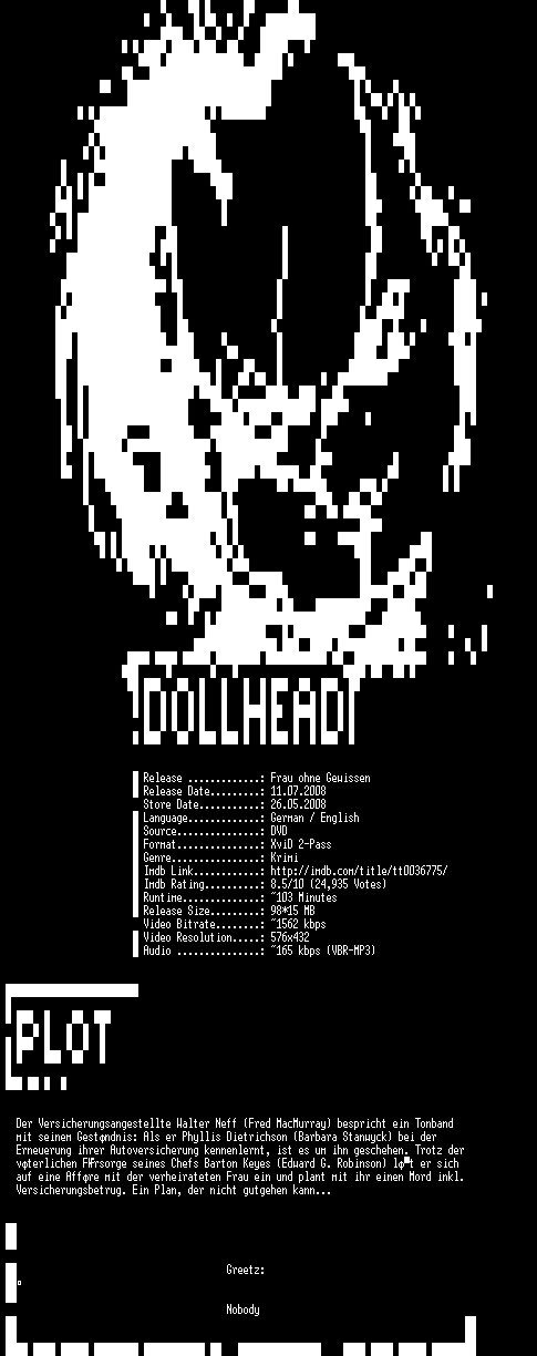 | FiLENAME: | 054.Frau.ohne.Gewissen.1944.German.AC3.DVDRip.XviD-DOLLHEAD.CD1.avi |