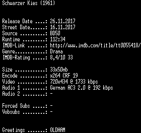 | FiLENAME: | Schwarzer.Kies.German.REMASTERED.1961.AC3.BDRip.x264-SPiCY.mkv |