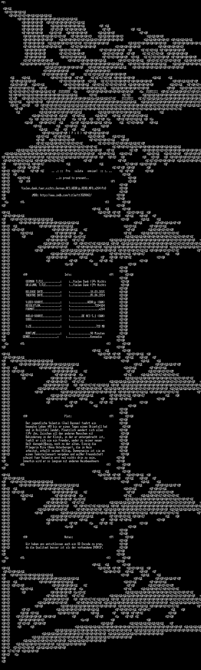 | FiLENAME: | Vielen.dank.fuer.nichts.German.AC3.WEBRip.READ.NFO.x264-PsO.mkv |