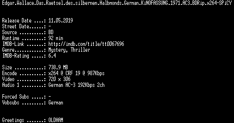 | FiLENAME: | Edgar.Wallace.Das.Raetsel.des.silbernen.Halbmonds.German.KiNOFASSUNG.1971.AC3.BDRip.x264-SPiCY.mkv |
