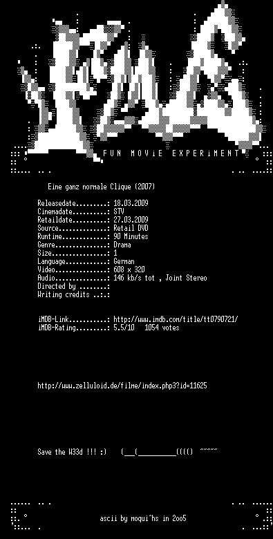 | FiLENAME: | Eine ganz normale Clique (2007) [GER WS DVD].avi |