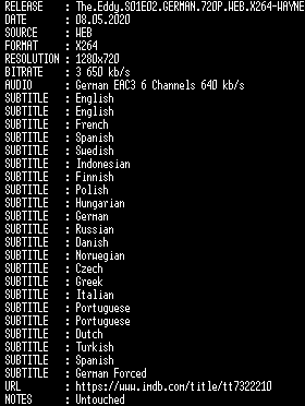 | FiLENAME: | The.Eddy.S01E02.GERMAN.720P.WEB.X264-WAYNE.mkv |