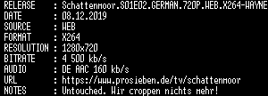 | FiLENAME: | Schattenmoor.S01E02.GERMAN.720P.WEB.X264-WAYNE.mkv |