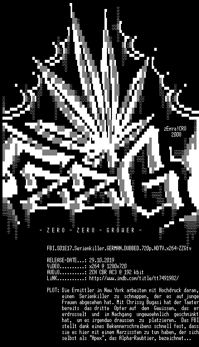 | FiLENAME: | FBI.S01E17.Serienkiller.GERMAN.DUBBED.720p.HDTV.x264-ZZGtv.mkv |