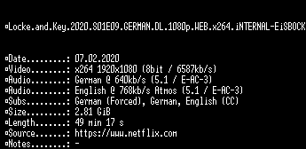 | FiLENAME: | Locke.and.Key.2020.S01E09.GERMAN.DL.1080p.WEB.x264.iNTERNAL-EiSBOCK.mkv |