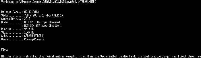 | FiLENAME: | Verlobung.auf.Umwegen.German.2010.DL.AC3.DVDRip.x264.iNTERNAL-HTPG.mkv |
