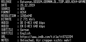 | FiLENAME: | Batwoman.S01E04.GERMAN.DL.720P.WEB.H264-WAYNE.mkv |