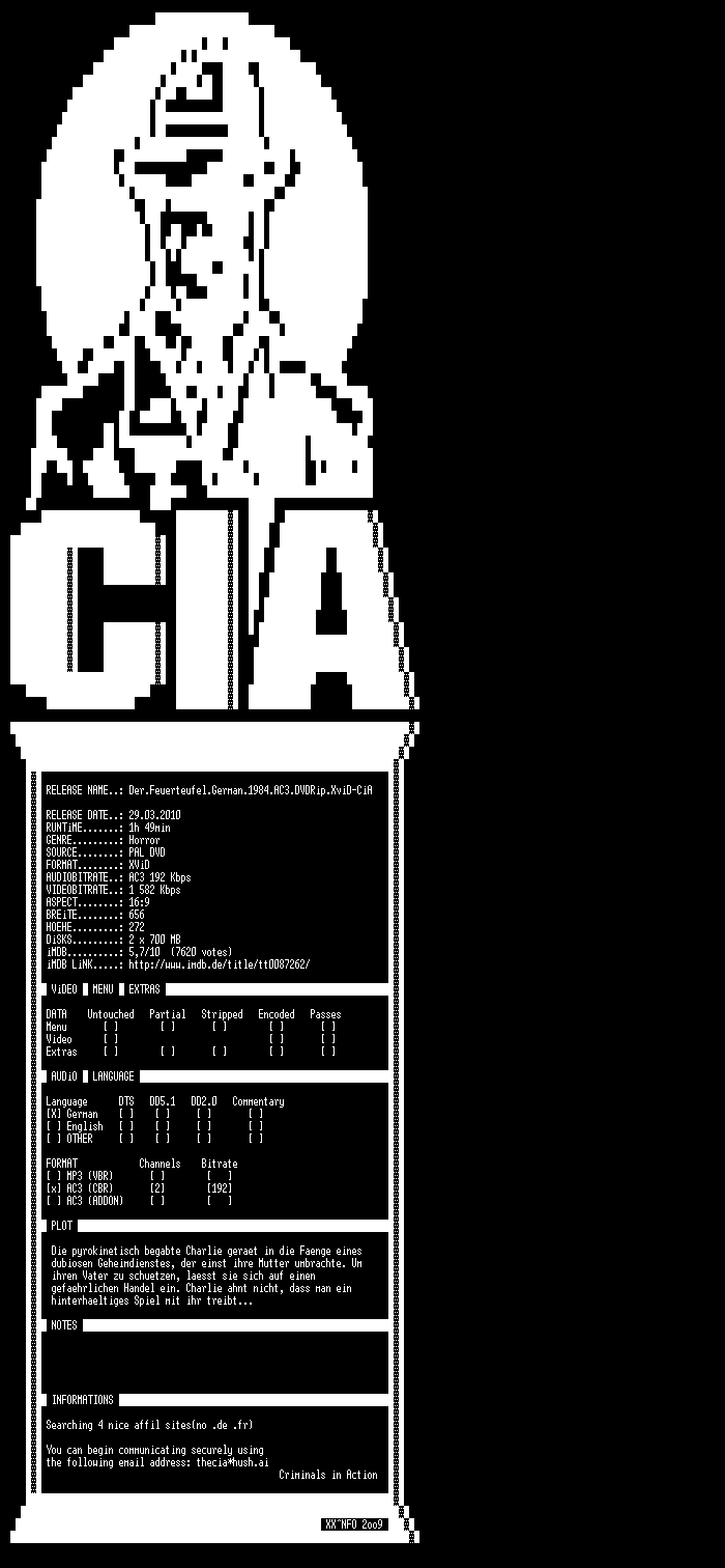 | FiLENAME: | Der.Feuerteufel.German.1984.AC3.DVDRip.XviD-CiA.CD1.avi |