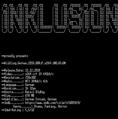 | FiLENAME: | Wildling.German.2018.BDRiP.x264-iNKLUSiON.mkv |