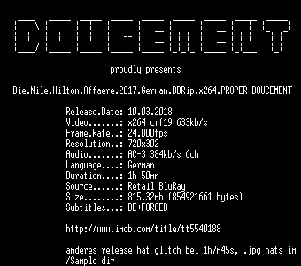 | FiLENAME: | Die.Nile.Hilton.Affaere.2017.German.BDRip.x264.PROPER-DOUCEMENT.mkv |