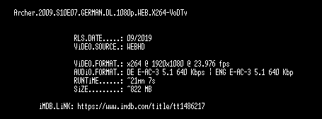 | FiLENAME: | Archer.2009.S10E07.GERMAN.DL.1080p.WEB.X264-VoDTv.mkv |