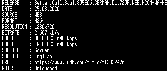 | FiLENAME: | Better.Call.Saul.S05E06.GERMAN.DL.720P.WEB.H264-WAYNE.mkv |