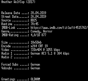 | FiLENAME: | Another.WolfCop.German.2017.AC3.BDRiP.x264-SPiCY.mkv |